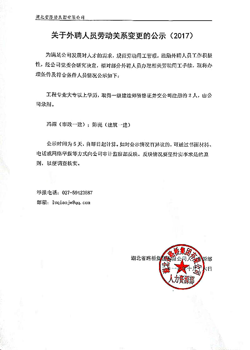 湖北省路橋集團有限公司 評優評先評選結果公示