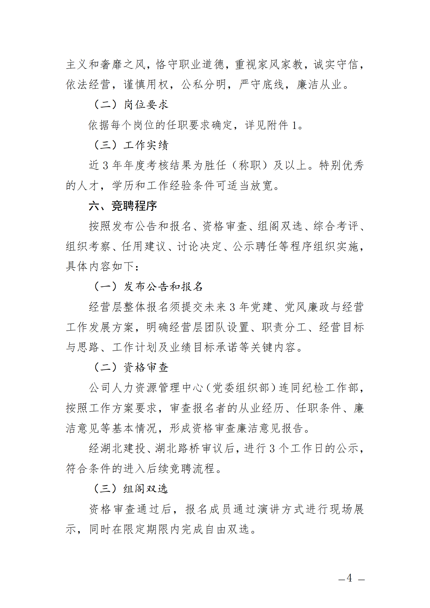 關于開展湖北省路橋集團天夏建設有限公司經營層團隊公開競聘的通知