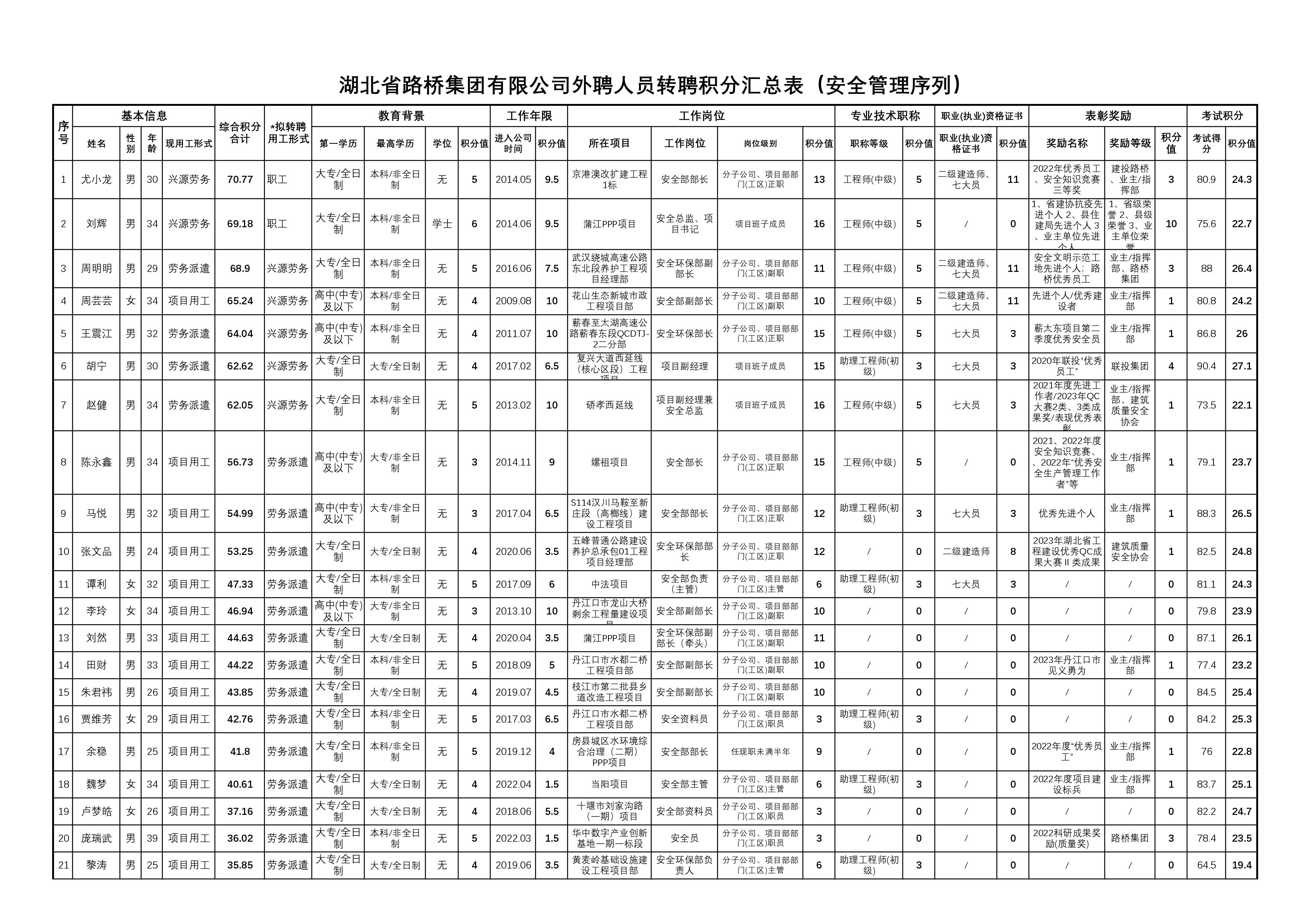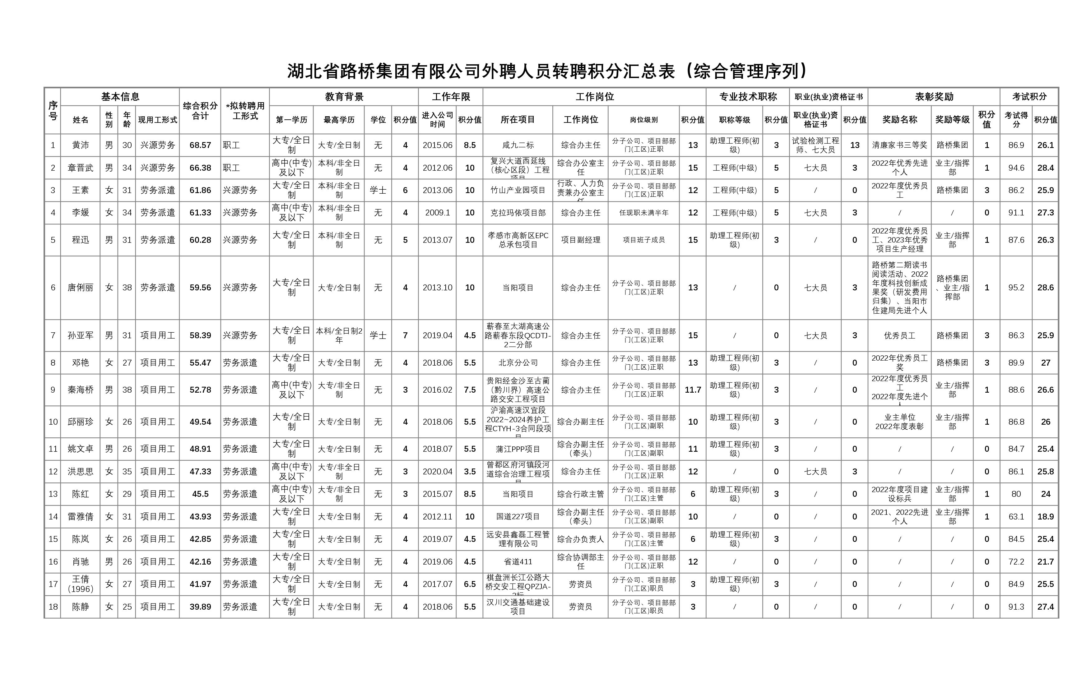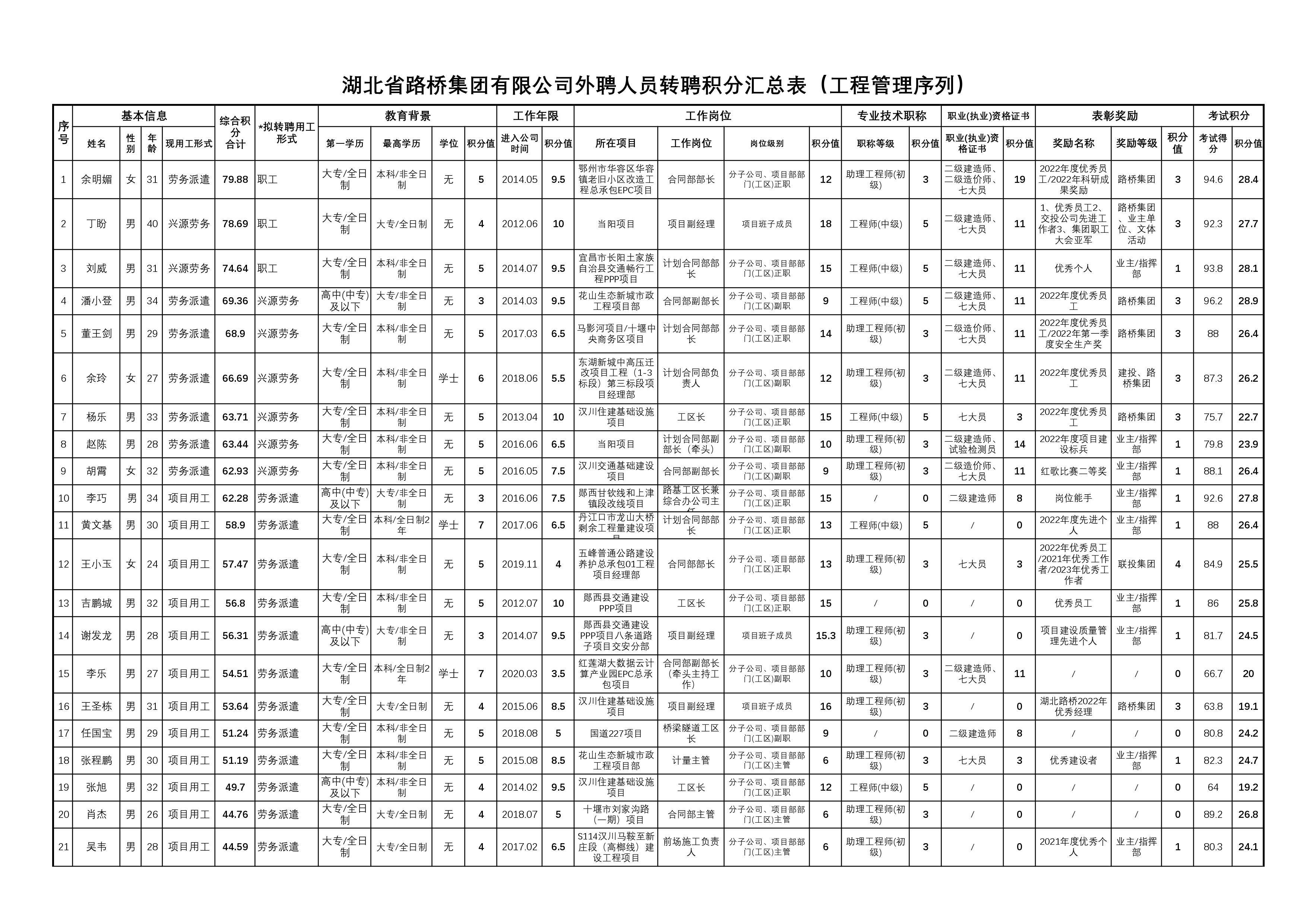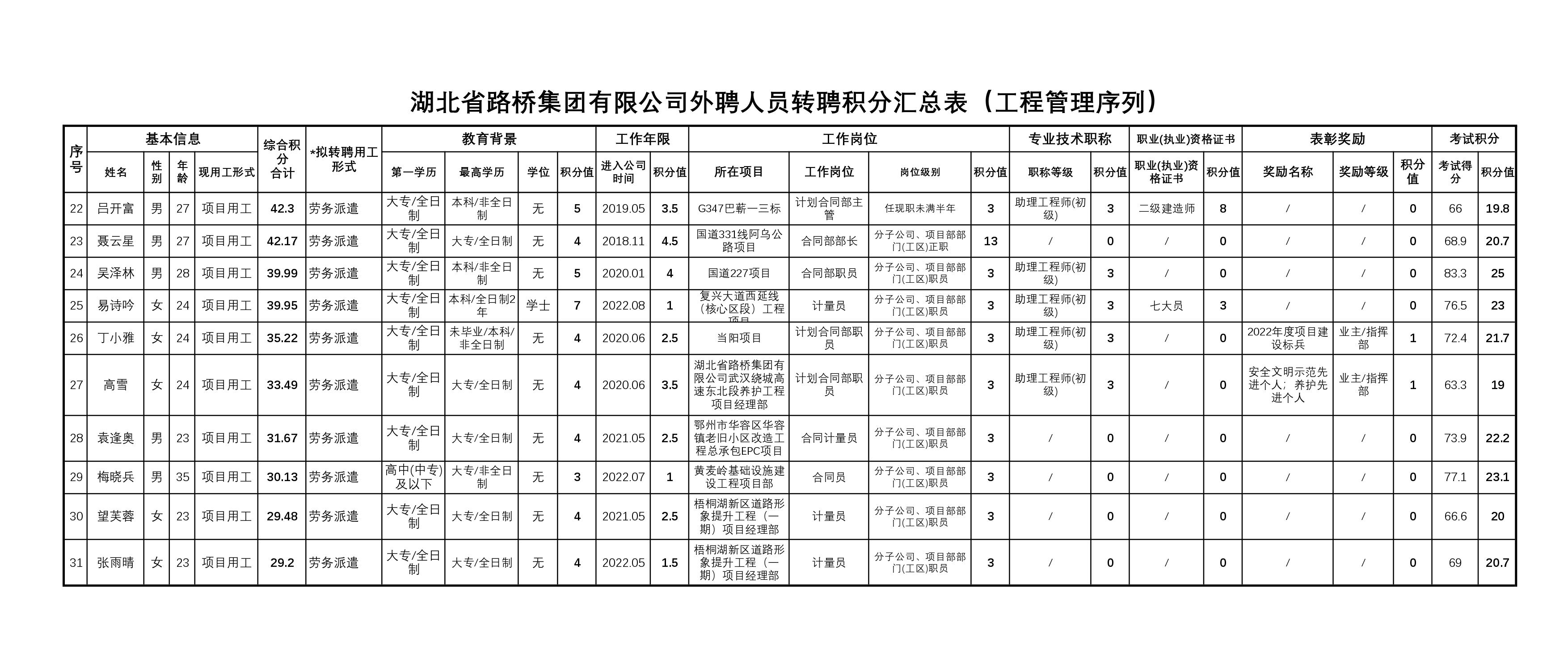 湖北省路橋集團有限公司2023年度擬轉聘人員補充公示