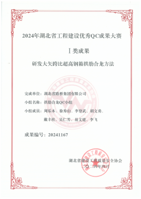 近日,由湖北省建設工程質量安全協會主辦的“2024年湖北省工程建設優秀QC成果交流發布會”圓滿落幕。湖北路橋聚焦丹江口水都二橋、京港澳改擴建1標等重點項目,研發多項關鍵核心技術,榮獲21項省級優秀QC成果,其中Ⅰ類成果12項、Ⅱ類成果5項、Ⅲ類成果4項,Ⅰ類成果獲獎比例遠超全省平均水平。