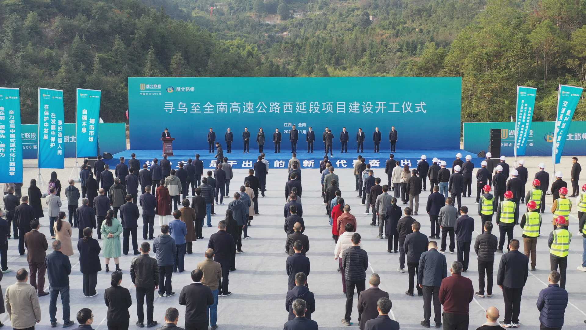 11月27日上午9時,尋烏至全南高速公路西延段項目開工儀式在江西省贛州市全南縣隆重舉行。江西省贛州市人民政府副市長鄒治宇出席并宣布開工;江西省綜合交通運輸事業發展中心主任曾曉文,湖北聯投黨委委員、副總經理汪繼明出席活動并致辭;農發行江西省分行副行長何爽,贛州市交通運輸局局長謝文才,湖北路橋黨委書記、董事長潘新平,全南縣政府各部門領導等出席活動。