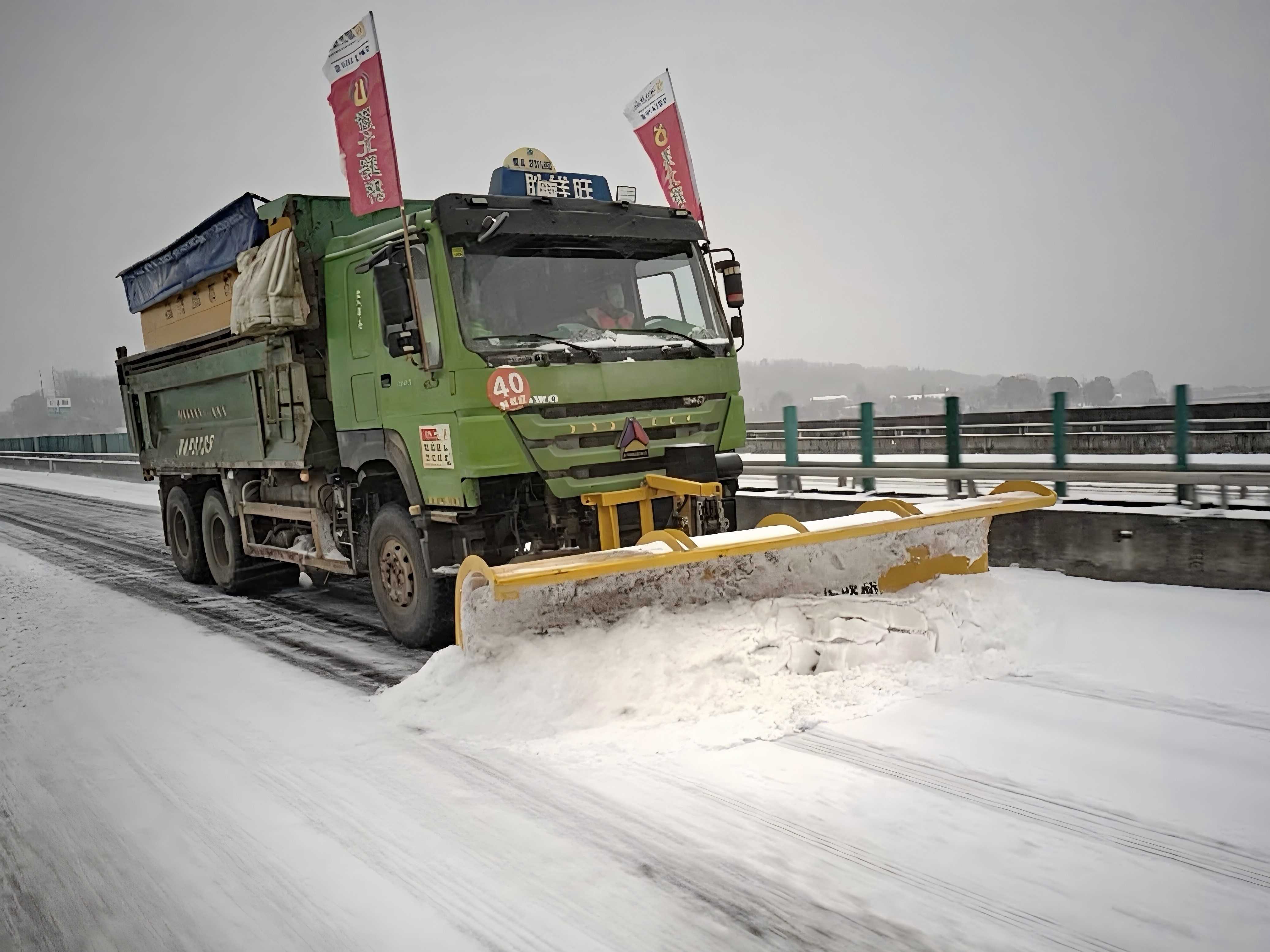 風雪驟至,戰鼓催征。19日晚,降雪如期而至且強度持續升級,路面被積雪覆蓋,冰層快速凝結。項目應急攻堅隊即刻集結,60余名養護人員身著“高速橙”,駕駛16臺鏟雪設備、10臺撒布機火速奔赴各責任路段。現場采取“機械為主、人工為輔”的科學作業模式,構建“前鏟后撒、循環推進、全域覆蓋”的梯隊作戰體系;鏟雪車轟鳴開路,鐵鏟破冰掃雪,在風雪中開辟出暢通通道;撒布車緊隨其后,精準播撒融雪劑,加速冰層消融,不留一處死角、不存一處隱患。項目實行領導帶班制和24小時值守制,黨員干部沖鋒在前、靠前指揮,實時研判路況、科學調度力量,用身影詮釋擔當,用行動凝聚斗志。寒夜中,凜冽的寒風裹挾著雪粒,拍打在養護人員的臉上,他們卻無暇顧及濕透的衣物、凍僵的雙手,始終堅守作業一線。截至目前,項目累計完成除雪里程64.4公里,消耗融雪劑100余噸,有效保障高速路通行安全。