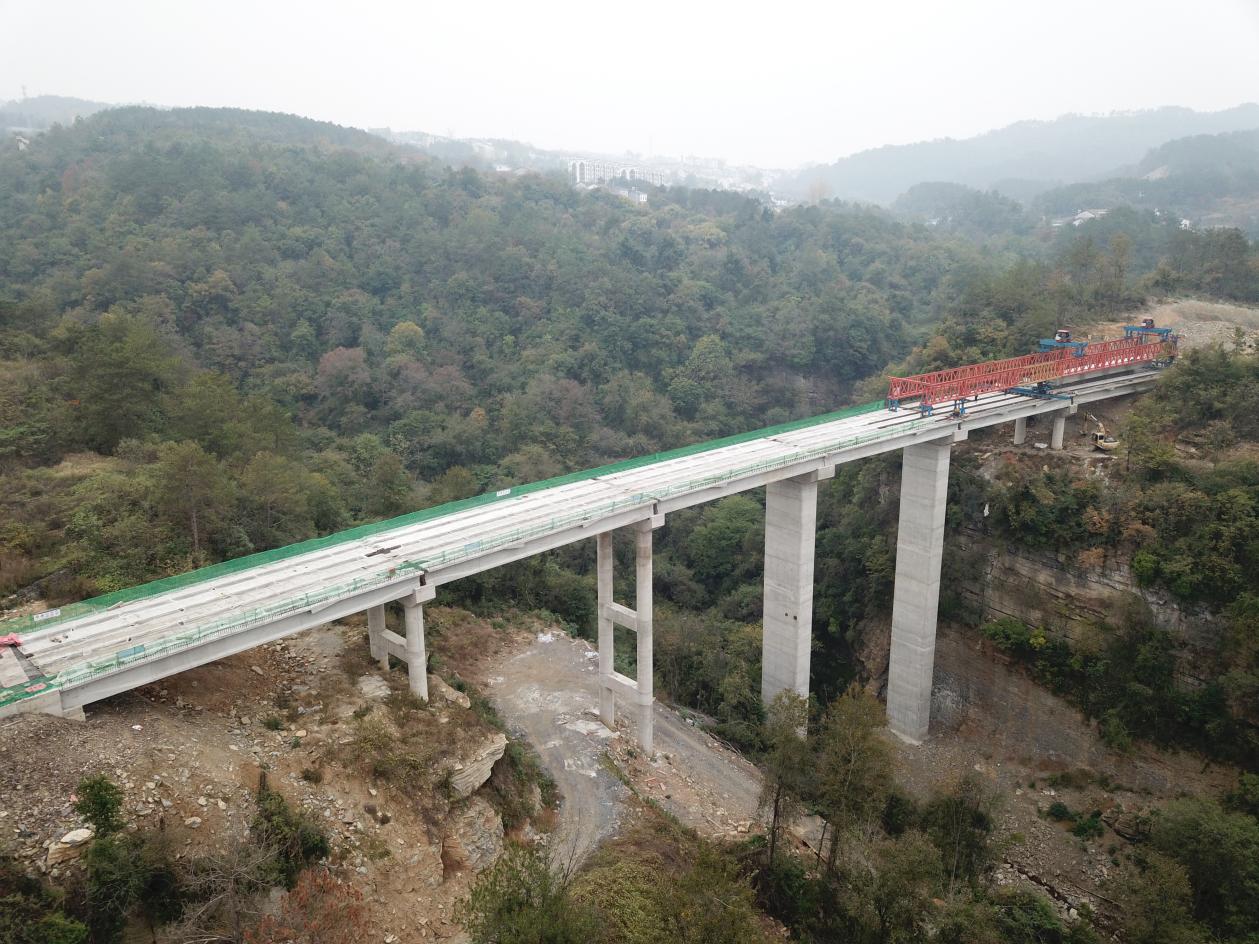 11月12日,隨著架橋機將最后一片T梁平穩(wěn)落在庵溝2號大橋0#號橋臺上,標志著由湖北路橋承建的遠安縣磷礦專用路項目全線首座大橋T梁架設順利完成。
